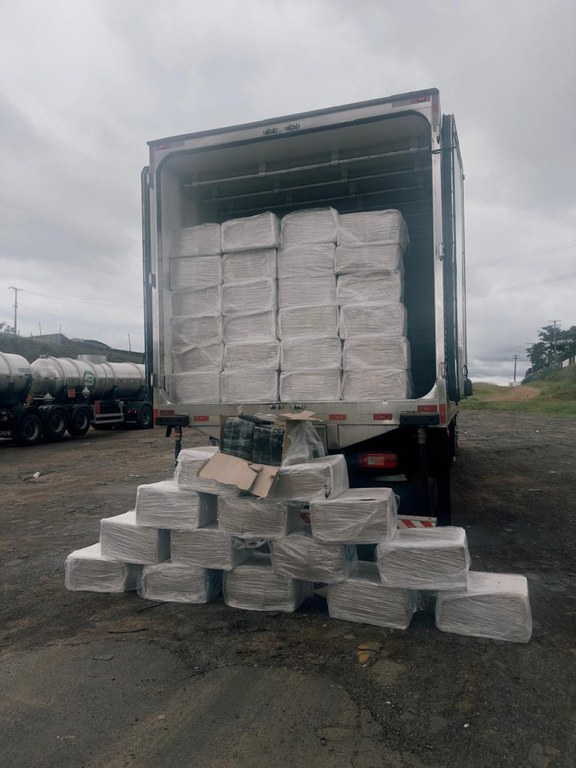 Durante a abordagem, equipes do Tático Ostensivo Rodoviário, da PM/SP, localizaram 40 volumes com maconha em pesos variáveis entre 35 e 40 kg no caminhão. A pesagem final apontou 1.540 kg da droga.